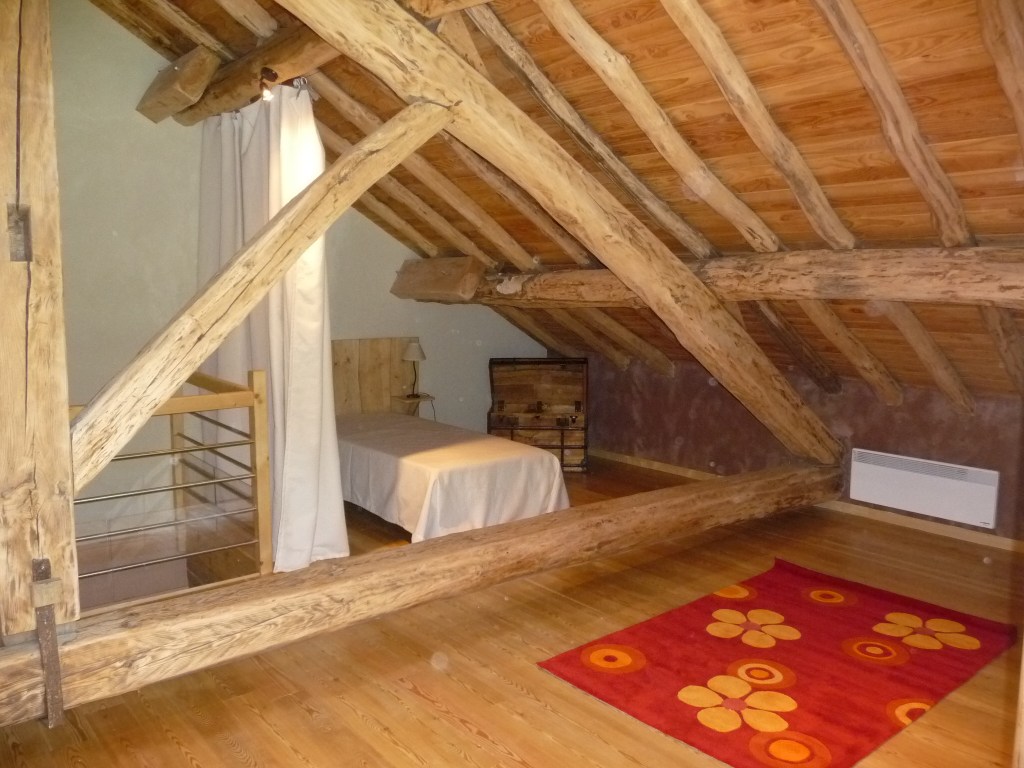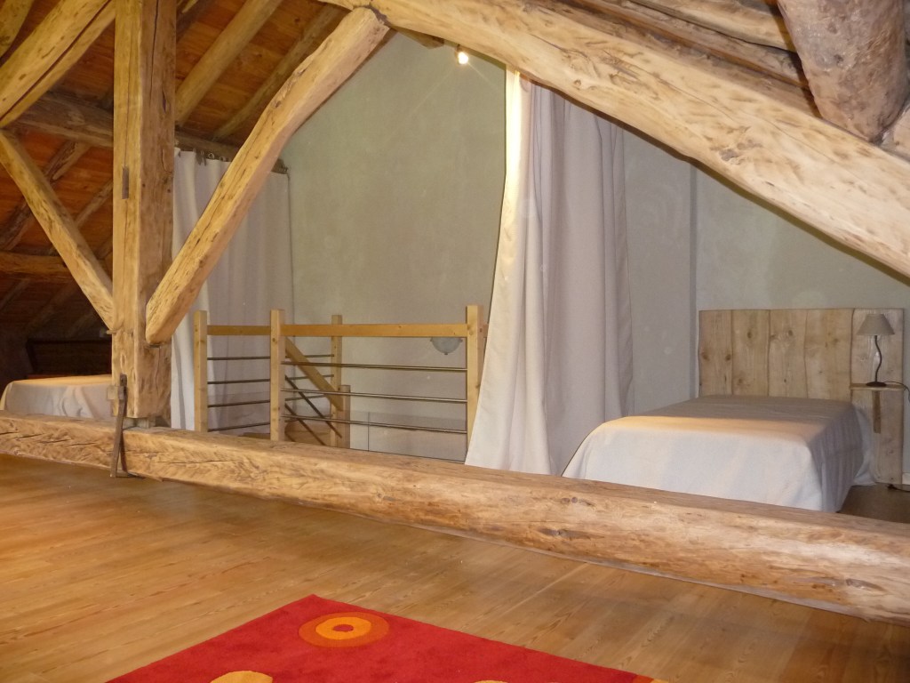 - Un grenier aménagé avec 2 lits 90/190 et un espace détente ludothèque avec vue sur les montagnes.