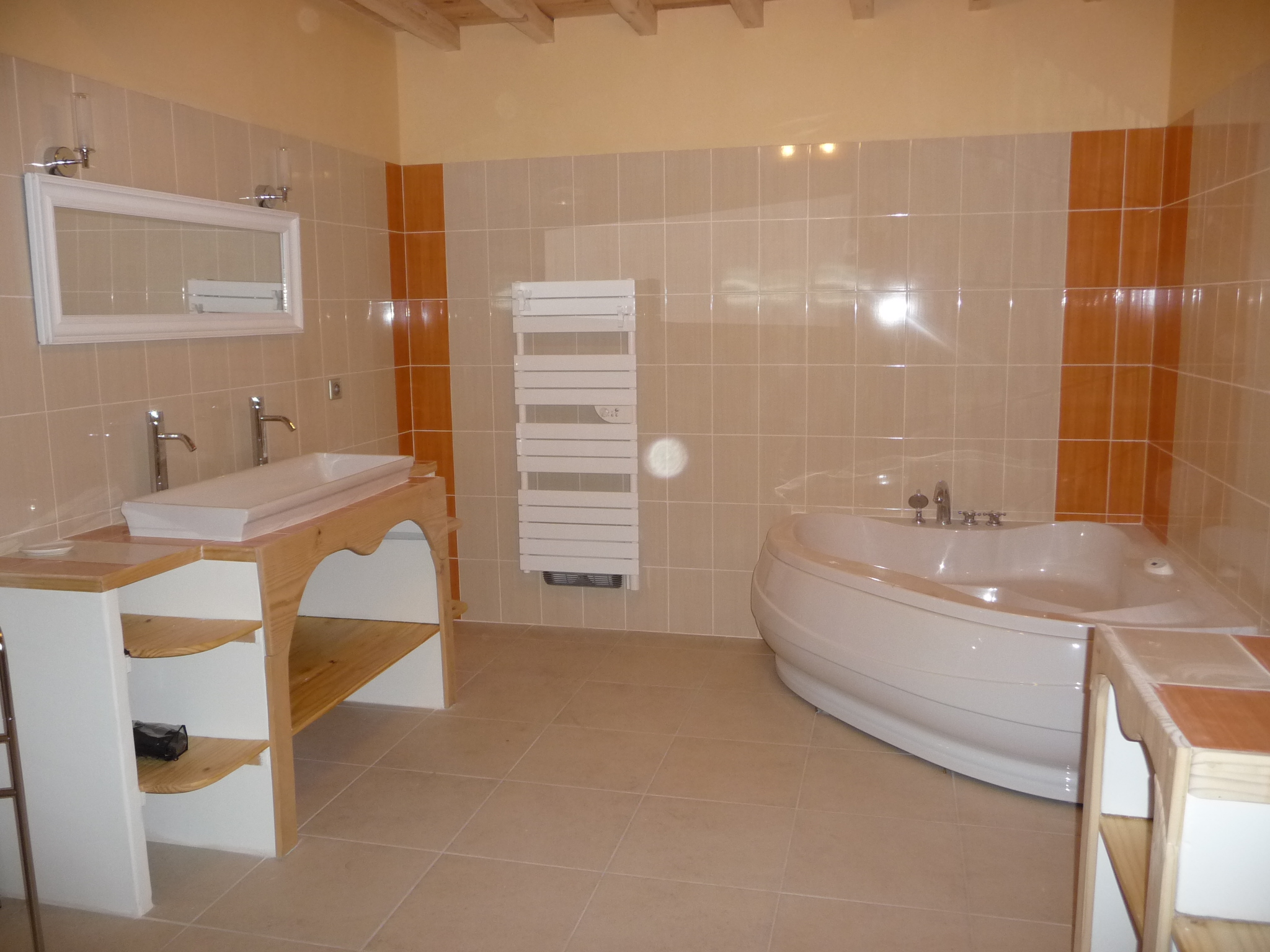 - Une grande salle de bain avec baignoire, sèche cheveux, les serviettes de toilettes sont fournies.